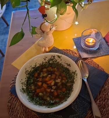Gesundes Essen kann so vielfältig und lecker sein, wenn du es in der Tiefe verstanden hast, geht es ganz leicht. Eine rein pflanzliche Ernährung ist keineswegs einseitig oder gar langweilig. Die Bilder, die du hier auf dieser Seite siehst, sind von mir selber oder engen Verwandten mit dem Smartphone gemacht worden, also keine professionellen Aufnahmen mit dem richtigen Licht, Präsentation oder Bildbearbeitung. Alles ganz echte Aufnahmen, von Speisen, die nach dieser Lebensform gekocht und gegessen wurden. Viele dieser Bilder sind auch auf meinen Reisen durch verschiedene Länder entstanden, es ist also durchaus überall möglich, sich gesund und basisch zu ernähren. Da ich Suppen und Eintöpfe liebe, gibt es davon hier viele Bilder, es gibt aber auch eine Menge anderer Rezepte, die ich bisher noch nicht ausprobiert habe.